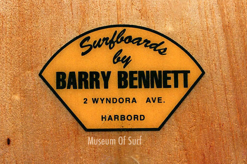 Barry Bennett surfboards were one of the Brookvale six as they were called. Pioneers of surfing and manufacturing. Barry branched out when he found it difficult to find good foam for his surfboards and decided to produce his own. Dion Chemicals were born and sold everything you needed to build a quality surfboard. Barry sadly passed away but the Bennett name lives on with his son Greg and grandson Tom.