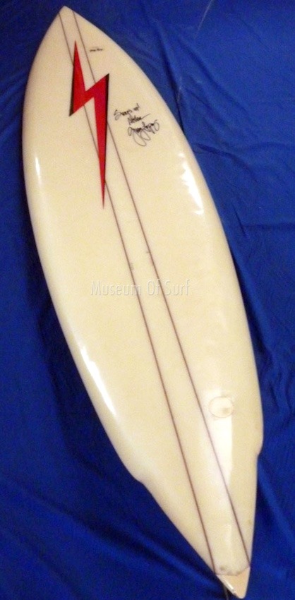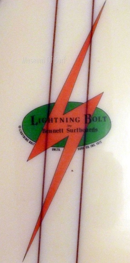 This board is a part of the Bennett Family collection. Gerry Lopez was the master of pipeline and he partnered with Bennett’s to make the Lightning Bolt surfboards. Made for speed and popular for the speed breaks like KIrra in Qld.
