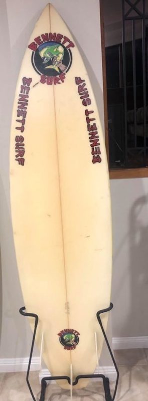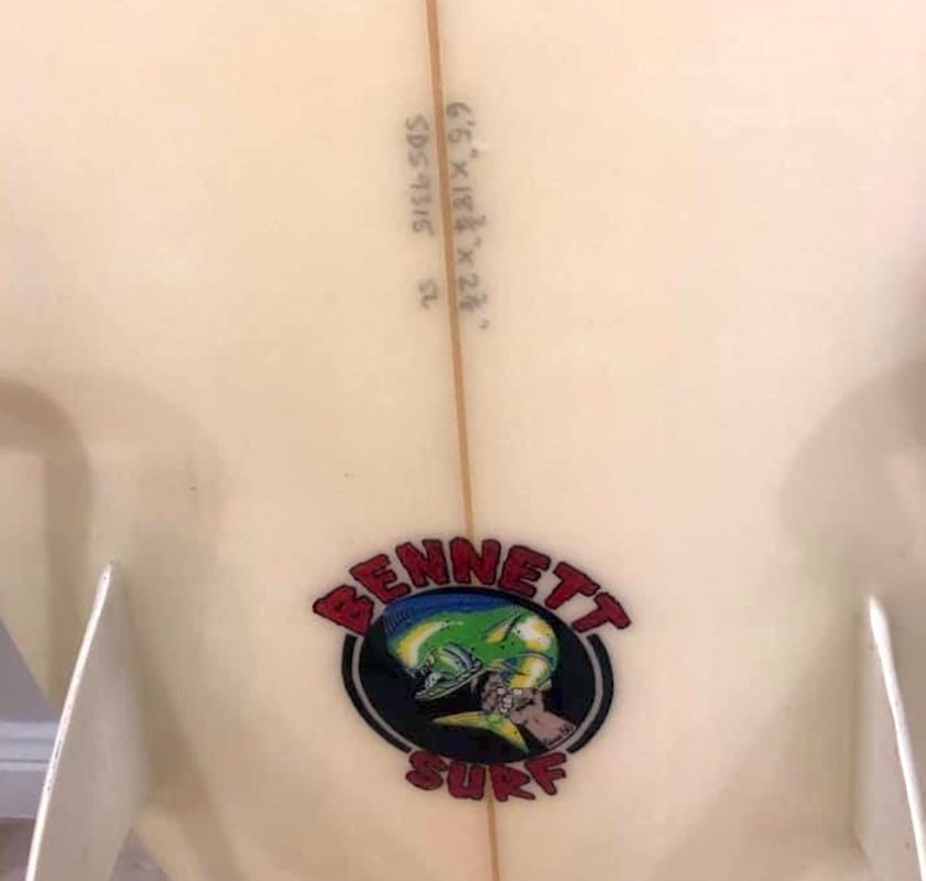 This board is made by Barry Bennett surfboards in Brookvale, Sydney, specifically for the Surf Dive N Ski retail chain of surf shops.