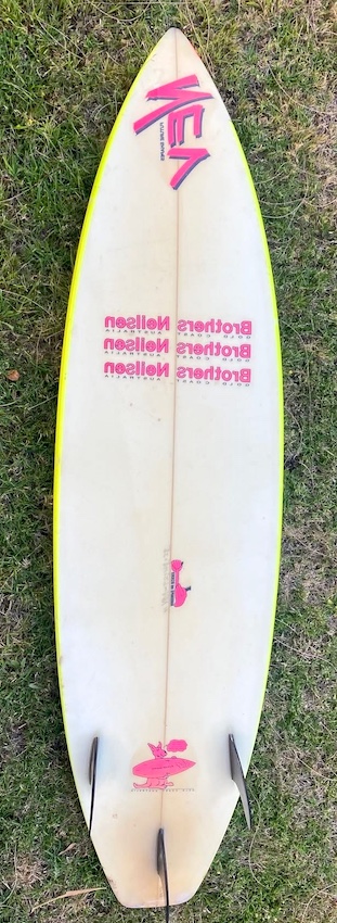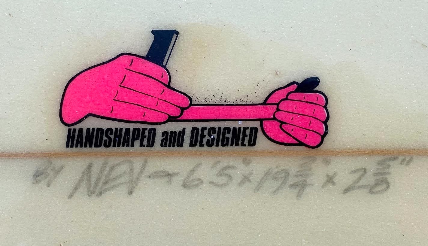 This board is a Brothers Neilsen and shaped by Nev Hyman   I would say with the Nev logo on this board it was made for the Brothers Neilsen shop and Nev shaped it, during his commencing his own manufacturing business.