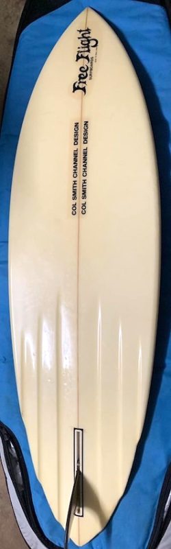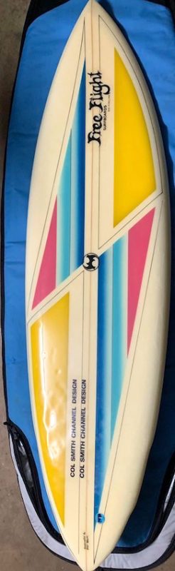 Free Flight were made in Ballina northern NSW, by Phil Myers. This board was shaped by Phil Myers & designed by Col Smith from Newcastle.