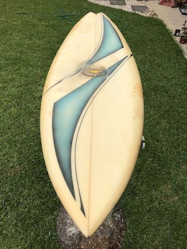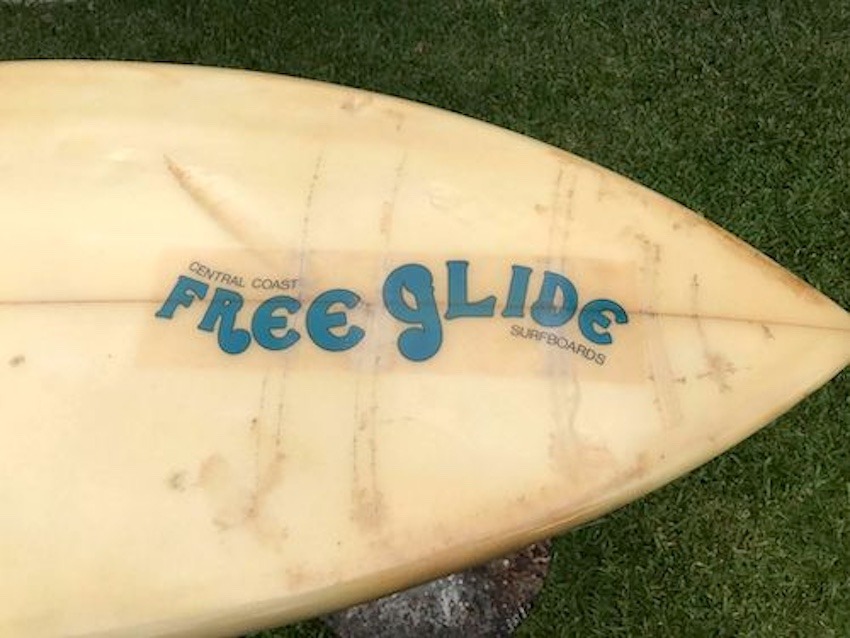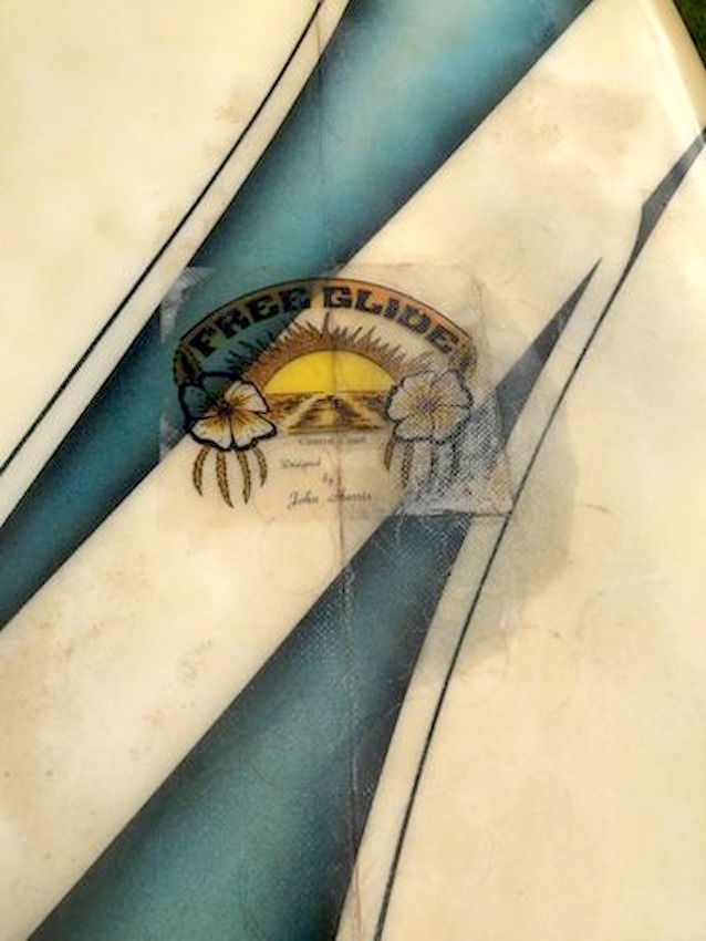 This another board from the Declan collection. Another great shaper in John Harris, a Dee Why boy who moved to the Central Coast and shaped with Bill Cilia of Nirvana fame and also Graham (Woody) Wood, but out on his own he became Free Glide!