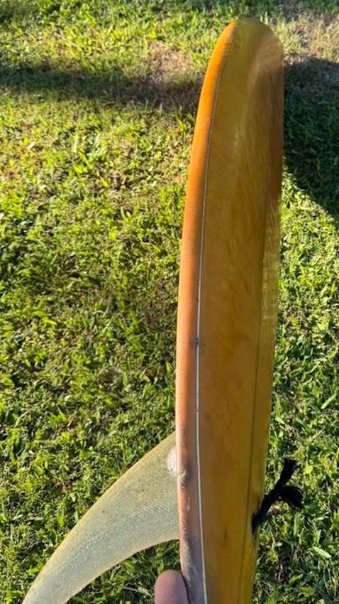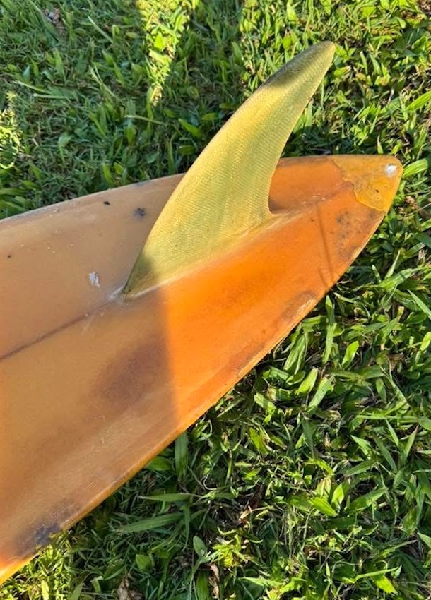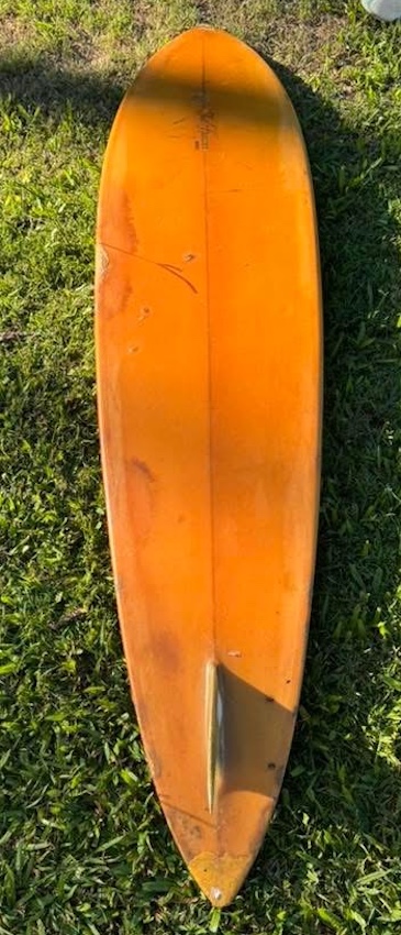 Hutchinson was a well-respected brand, and Ted Spencer was such an iconic surfer shaper this board is such a rare find as Ted probably only shaped a few boards for Hutchinson prior to Ted joining the Hari Chrishna movement. Ted gave up all his worldly goods and eventually moved to the United States, where he lives today.