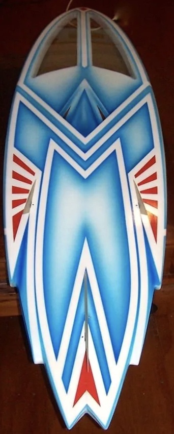 I was trying to get the look of a jet motor, and multi-levels but still surfboard style.
