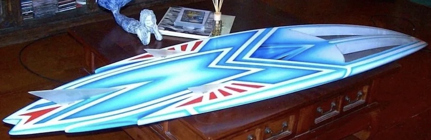 the flyers have a deep channel in the blue area, and the next flyer curves up from the bottom of the board, obviously a funky new design concept back in time.