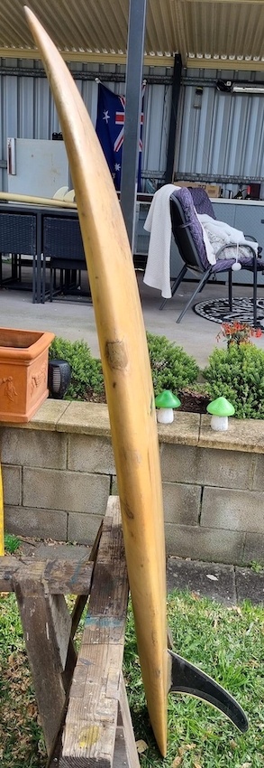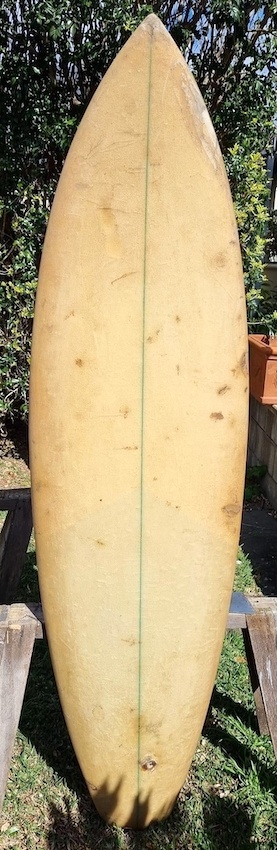 John Rhodes was an outstanding shaper and surfer from the Cronulla area, who’s boards were always based on functionality rather than colours or frills. This board was made at the Shane factory just after John & Darryl Eastlakes closed the Something Incredible Surfboards factory.