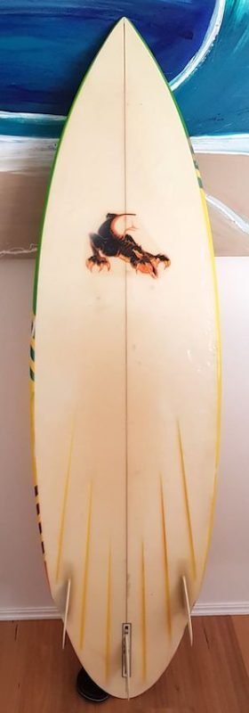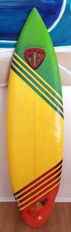This board is part of Peter’s collection. Mark Richards quality shines through with all of his board. Mark’s father Ray Richards was considered one of the most influential manufacturers of the time and the fact that he came from Newcastle and not the Northern Beaches is a testament to this, as most of the design influences came from the major Brookvale area.
