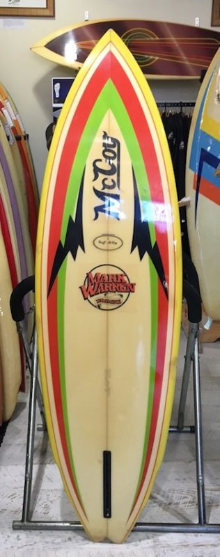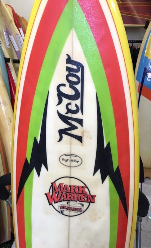This board is part of the Soul Surf collection. Soul Surf is a vintage surf shop in Mona Vale Sydney and is one of the only licensed second-hand dealers in Australia. This McCoy is just prior to the Lazor Zap & is one of Mark Warren’s personal riders.
