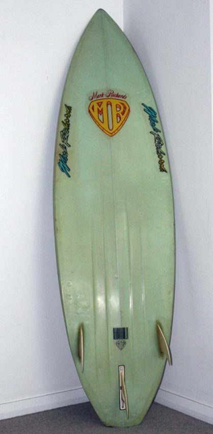 This board is part of the Greg & Kristi collection. One of the first MR thrusters, shaped by Bob Margetts. Mark Richards is known for his twin fins, but he is a craftsman so anything that came out of his factory, was always a class above.