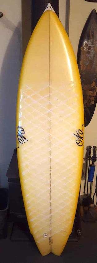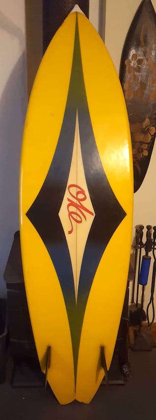This board is a part of the RF collection and came out of the Oke factory in Victoria. Allan Oke was a well-known identity in the surf scene and surfed mostly around the Philip Island area. Oke surfboards are still made today and have a loyal following.