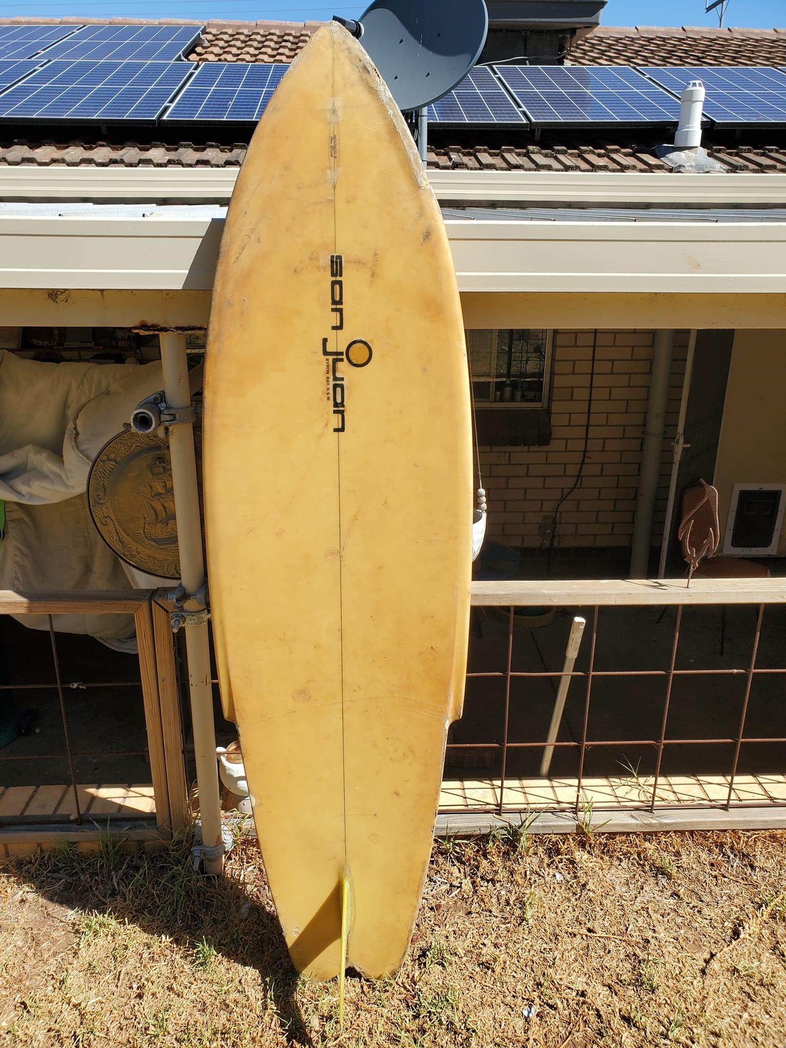 The San Juan factory at Byron Bay was opened by Ken Adler after he moved from Ballina, the name San Juan came from his wife who spoke Spanish and said it would be a name everyone would remember. She was so right not only was it unusual, but they turned out some of the best boards ever from that factory, with the top shapers and Glassers of the time, it was considered the go to factory for a new board for many years, and as you can see they are still a collectors dream today.