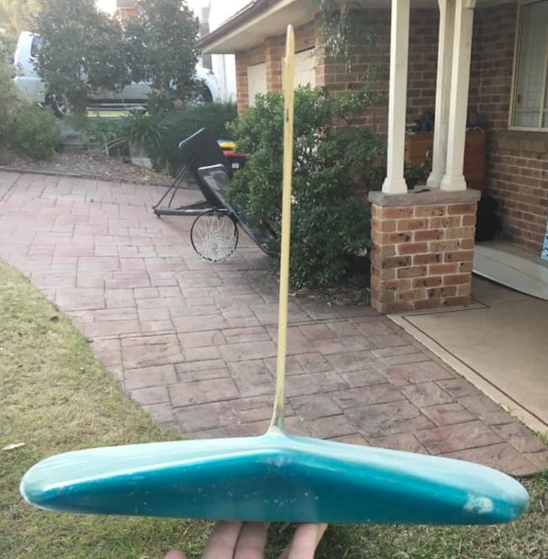 Another one of the masters Scott Dillon’s treasures. This was at the start of the shortboard era, and the vee bottom, thinner rails, a lot more rocker with a Greenough fin