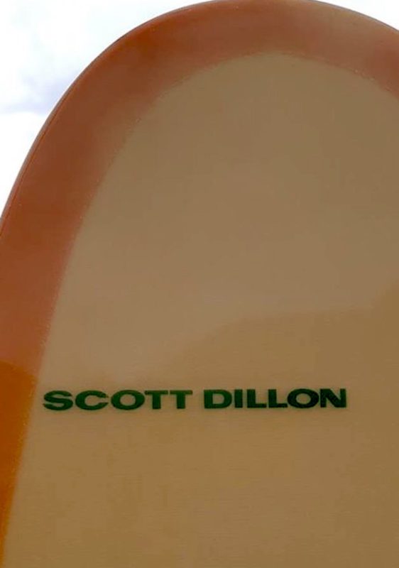 Scott Dillon was one of the pioneers of surfboard manufacturing and surfing in general, he was an enigmatic character that loved the adrenaline rush of big waves. This board is an early stringerless model, this was to keep the weight of the board down as the beginning of the shortboard era is just on the horizon.