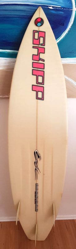 This board is part of Peter’s collection. John “Skippy” Skipp was Wollongongs nice guy of surfing, Skippy has always been a genuine guy, that passed his knowledge on to shapers, like Terry Richardson, Mick Carrabine, and many others. This one was shaped by Ed Sinnott a highly underrated shaper.