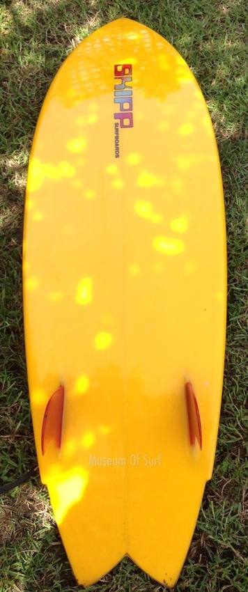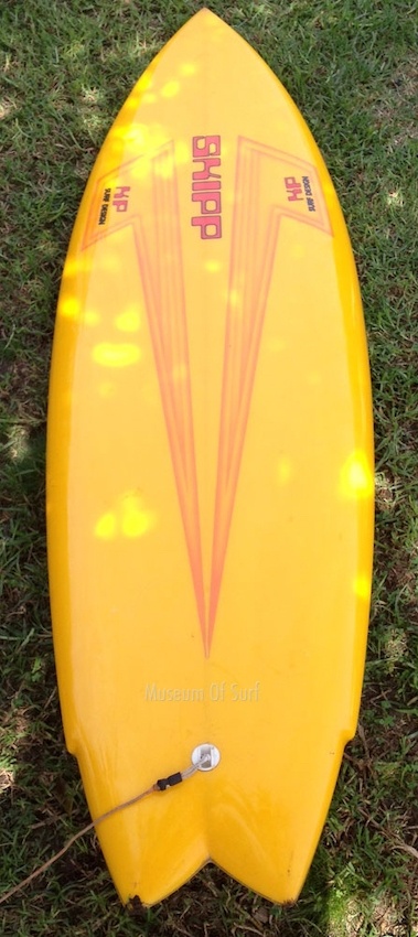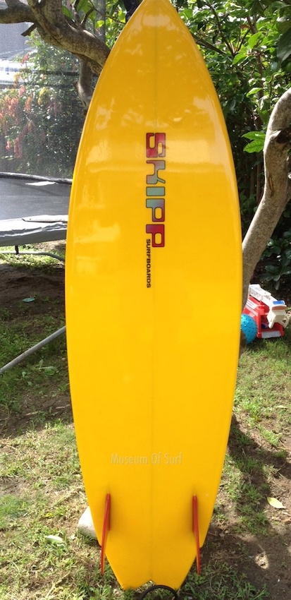 This board is my sons and is an excellent example of not only Kevin Parkinson’s shaping but the Twin Fin revolution happening at the time, and as per usual the Skipp quality. It also has the old style rubber leg rope still attached.
