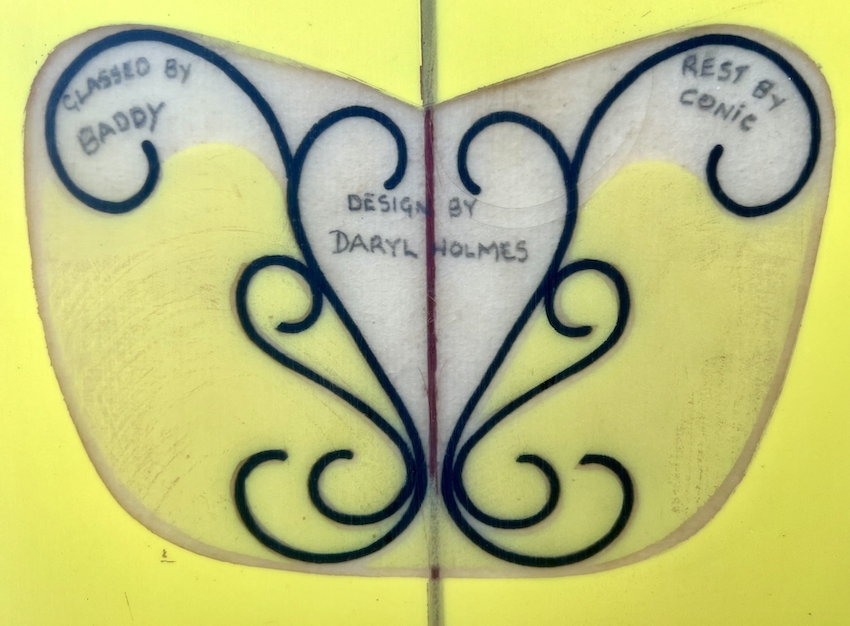 This board is a one of a kind, designed by and for Daryl Holmes, glassed by Baddie (David Trelor) and finished by Connie.