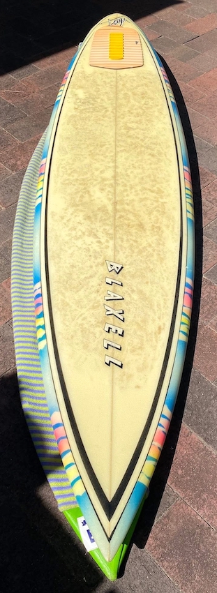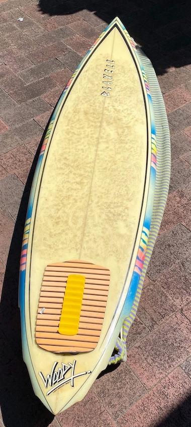 This board is a very rare board as Woody (RIP) grew up in Norah Head on the NSW Central Coast, then moving to Northern NSW near Byron Bay, but this board was shaped for Blaxell whilst Woody was on a trip to Western Australia.