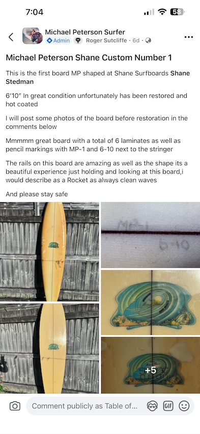 This is the first board MP shaped at Shane Surfboards
