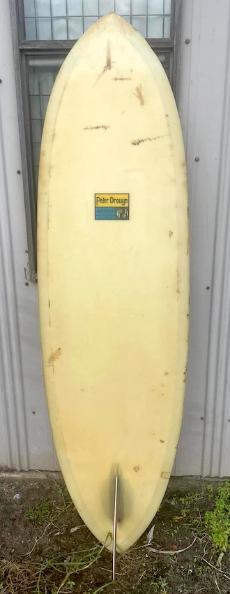 This board is a ripper from the transitional era of 1968-1970 when boards went from 9′ to 6′ in a few years and styles changed with them. Such a great experience to go through and such freedom from the walking board to vertical manoeuvres. Peter Drouyn emerged through this era as the stylist everyone followed.