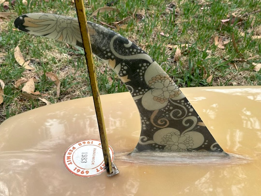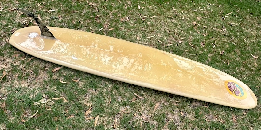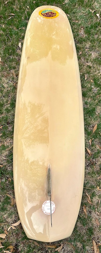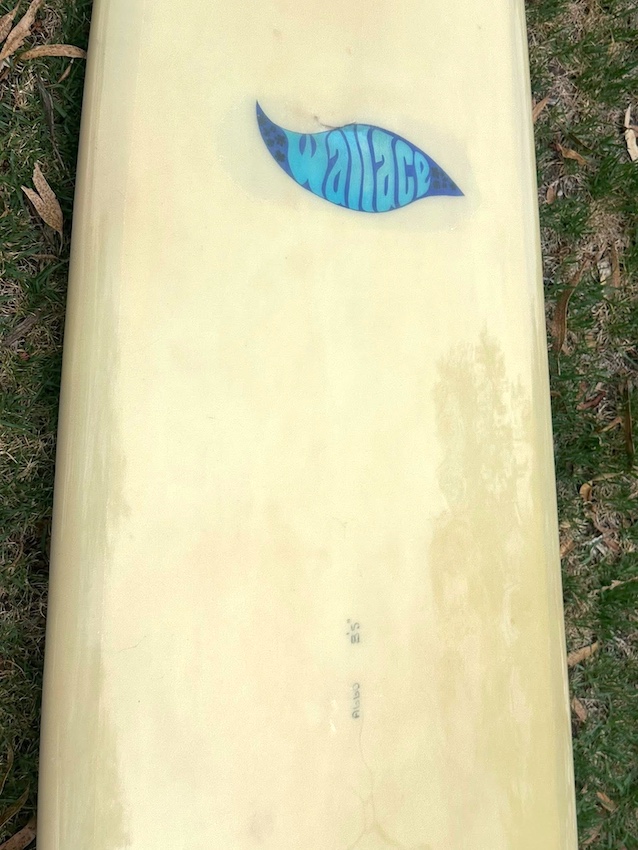 This board is Bill Wallace’s take on the Bob McTavish V Bottom, which was the start of the top-to-bottom turns on a wave. Prior to this it was trim, nose ride and cutback. The V Bottom made it possible to do near vertical turns and re-entries. They were a bit hard to get used to but it allowed so much more maneuverability.