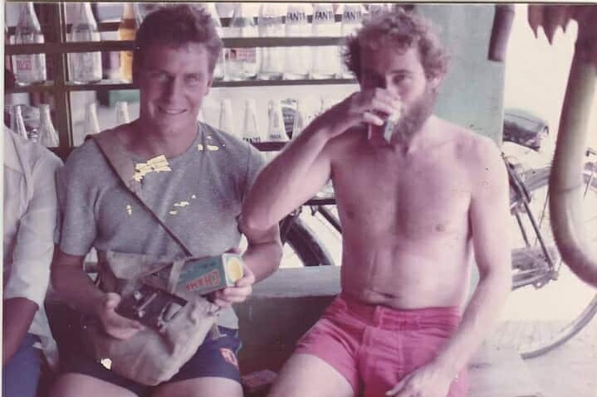 Last photo of Me and Guy Barrett in Aragam Bay 1994 with our Fireworks At one stage everyone had them and people were Ambush at times with Bombs. Kind of crazy at the time as the Civil War was on with Curfew time in our Village. We stayed in Aragam Bay for 3 Mths going surfing the Point every day, Big or small.